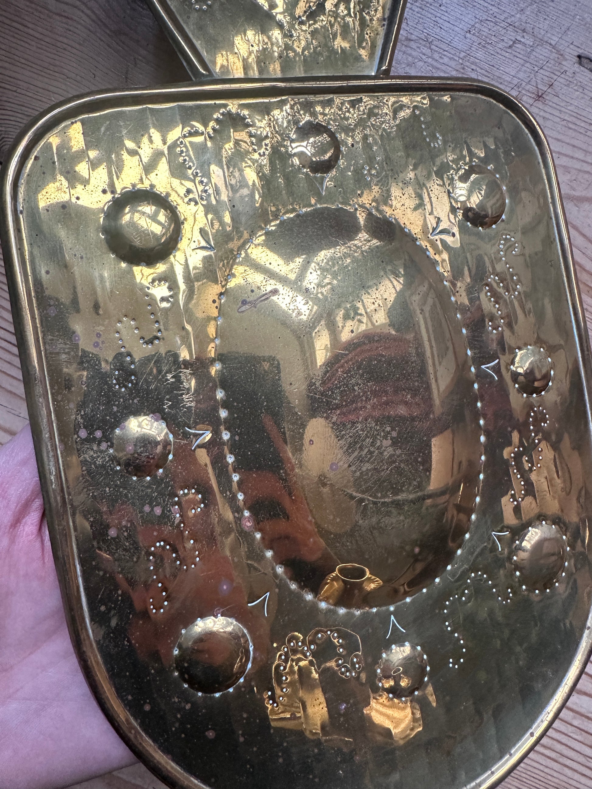 A pair of Vintage Swedish Brass Heart Sconces. There are some tarnishing and small scratches to the plate. Please see photos for a closer look. They hold standard size candles.